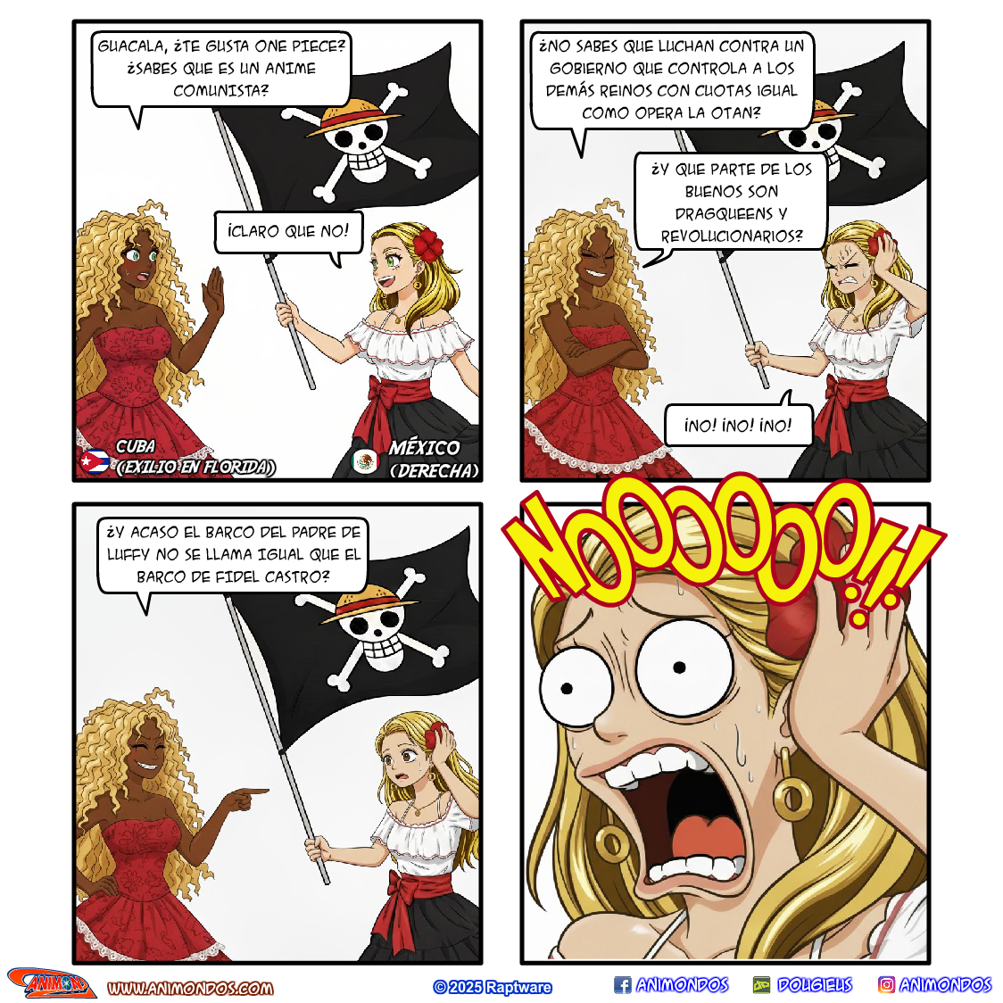 'Mexico de derecha sale a peotestar con la bandera de Luffy.'